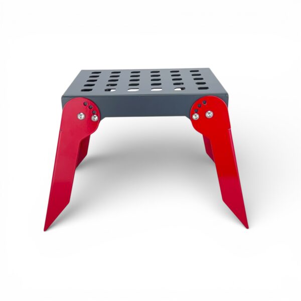 Projetado em aço de alta resistência, o cavalete oferece base firme e apoio seguro para treinos e alinhamento antes da largada. Seu grande diferencial está na regulagem lateral, que permite ajustar a altura de forma prática e precisa, adaptando-se a diferentes motos, categorias e preferências de pilotagem.